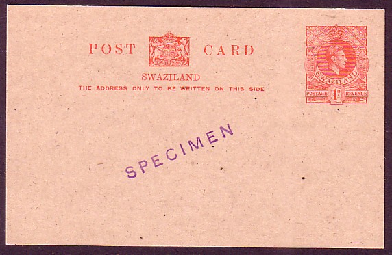 Swaziland: 1943 King George VI 1d carmine on