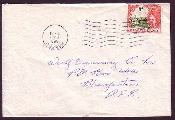 Basutoland: 1959 cover franked QE II 3d tied Maseru